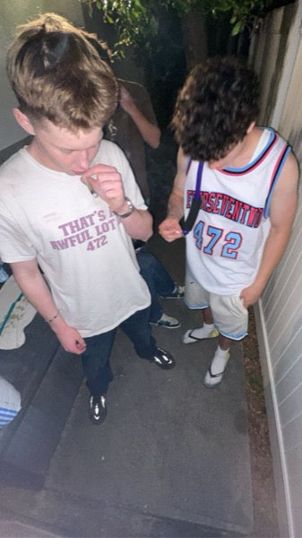 A classic 472 tee, inspired by Desto Dubb's Awful Lot Of Cough Syrup brand, designed in fall 2023.